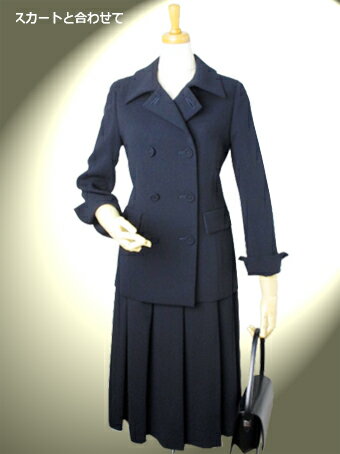 高品質 完全日本製 二重織 新ダブルウール ダブルフロント ジャケットコートとソフトプリーツスカートのスーツ【ロイヤルメード カラー 紺】ショートコート 入学式 卒業式 ビジネス ミセス 特別セット価格